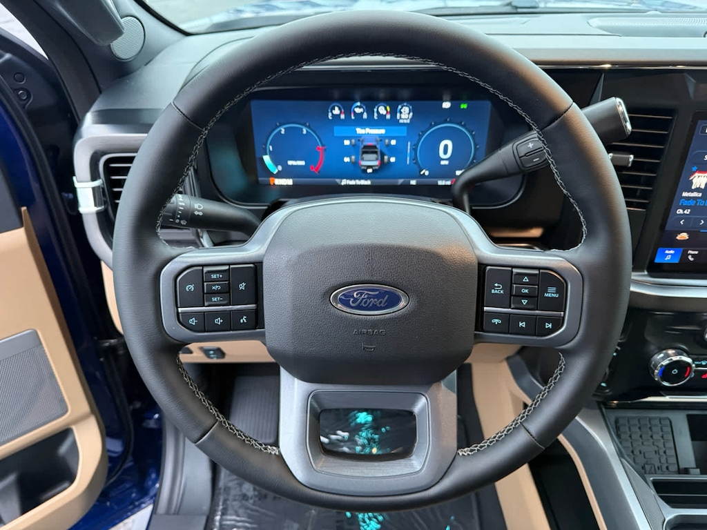 Navigation, Heated Driver Seat, Heated Rear Seat, Cooled Driver Seat, Back-Up Camera, Premium Sound System, Satellite Radio, iPod/MP3 Input, Onboard Communications System, Trailer Hitch. MP3 Player, Keyless Entry, Privacy Glass, Child Safety Locks. Ford LARIAT with Argon Blue Metallic exterior and Baja interior features a 8 Cylinder Engine with 475 HP at 2600 RPM*.