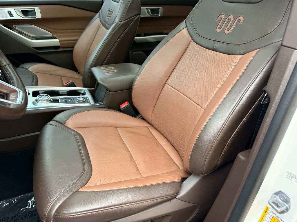 Leather Seats, Third Row Seat, Navigation, Quad Bucket Seats, Power Liftgate, Rear Air, Heated Driver Seat, Heated Rear Seat, Cooled Driver Seat, Back-Up Camera. Rear Spoiler, MP3 Player, Remote Trunk Release, Privacy Glass. Ford King Ranch with Star White Metallic Tri-Coat exterior and Java interior features a V6 Cylinder Engine with 365 HP at 5500 RPM*.