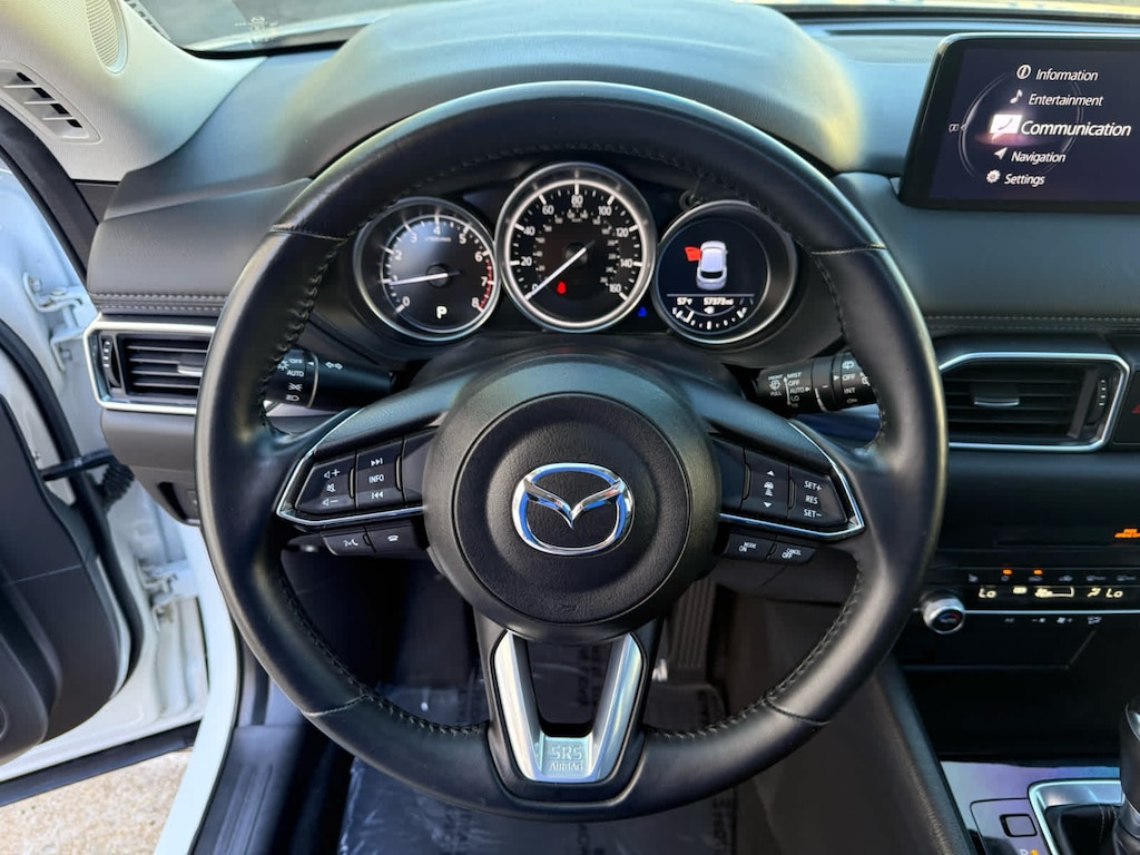 Leather Seats, Sunroof, Power Liftgate, Heated Driver Seat, Back-Up Camera, iPod/MP3 Input, Onboard Communications System, Aluminum Wheels, Keyless Start, Dual Zone A/C. Rear Spoiler, MP3 Player, Remote Trunk Release, Keyless Entry. Mazda CX-5 2.5 S Preferred Package with Rhodium White Metallic exterior and Black interior features a 4 Cylinder Engine with 187 HP at 6000 RPM*.