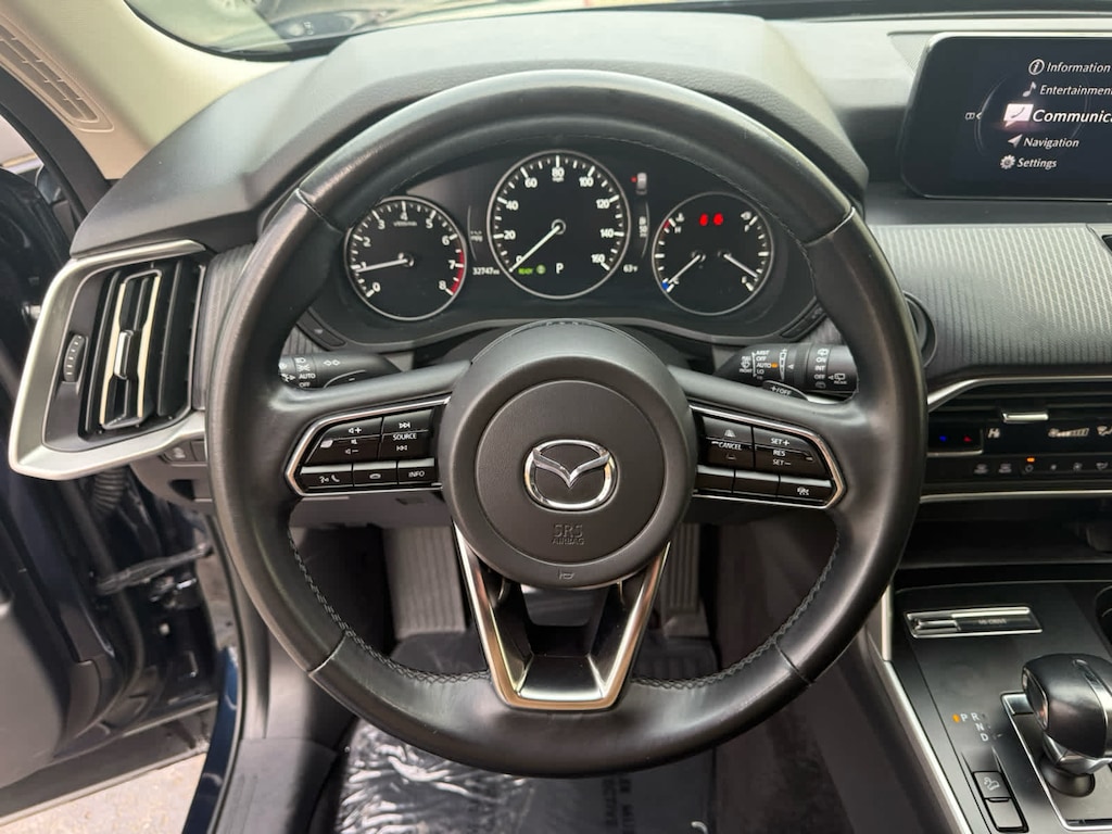 Third Row Seat, Power Liftgate, Rear Air, Back-Up Camera, iPod/MP3 Input, Onboard Communications System, Aluminum Wheels, Keyless Start, Dual Zone A/C, Lane Keeping Assist Rear Spoiler, MP3 Player, Remote Trunk Release, Privacy Glass. Mazda CX-90 Select Package with Deep Crystal Blue Mica exterior and Black interior features a Straight 6 Cylinder Engine with 280 HP at 5000 RPM*.